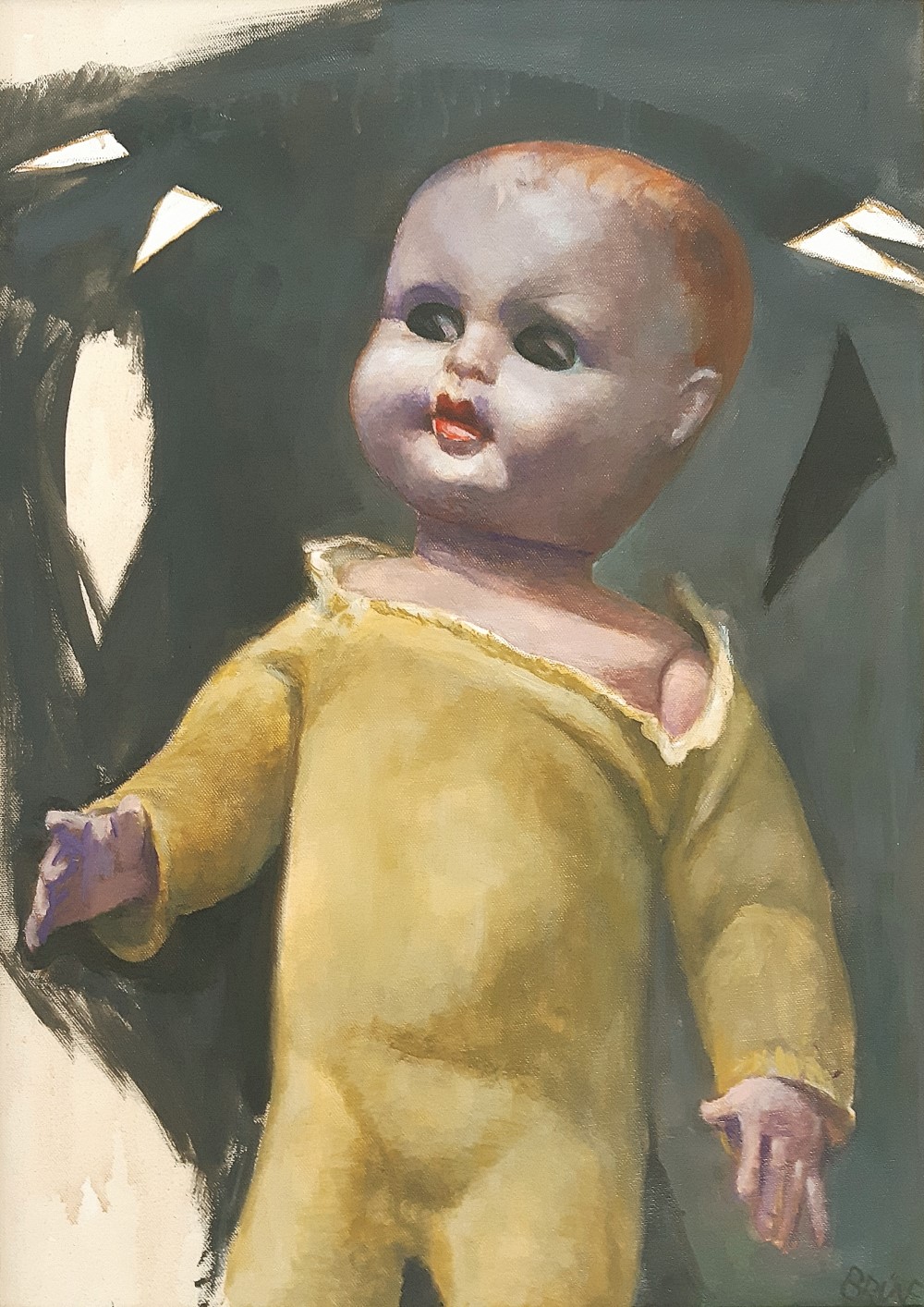 Gudrun Brüne (1941 – 2025) studierte von 1961 bis 1966 an der Hochschule für Grafik und Buchkunst in Leipzig. Von 1979 bis 1999 hatte Gudrun Brüne den Lehrauftrag für Malerei und Grafik an der Kunsthochschule Burg Giebichenstein in Halle/Saale inne. Bereits zu DDR-Zeiten setzte sich diese Malerin mit den Motiven der Puppen und Masken durch. Diese wiedererkennbaren Protagonisten im Malereikosmos Brünes sind oft beschädigt, lädiert, in Gruppen und ineinander verschlungen, ausgeliefert oder aktiv, lieblich und verstörend, entfalten diese ein energisches Eigenleben. Befragt nach dem Motiv der Maske und deren permanenter Neuinszenierung sagte Gudrun Brüne: „Die Maske ist zugleich eine Demaskierung“. Der Mensch hinter der Verhüllung  bleibt demnach eben doch sichtbar, wird eventuell noch erkennbarer. „Welche Maske man trägt, verrät viel über den Tragenden.“ ergänzt die Malerin ihre erste Aussage. Die Maske steht für ein Wechselspiel aus Transparenz und Verbergen, eine menschliche Kulturtechnik, die ein gesellschaftliches Miteinander erst möglich macht und uns doch immer wieder vor erhebliche Herausforderungen stellt. Brünes Bilder bestechen durch eine kraftvolle Freiheit, eine geradezu jugendliche Malfreude. Ein Genuß und Vergnügen! Gudrun Brüne war die lebenslange Partnerin von Bernhard Heisig.