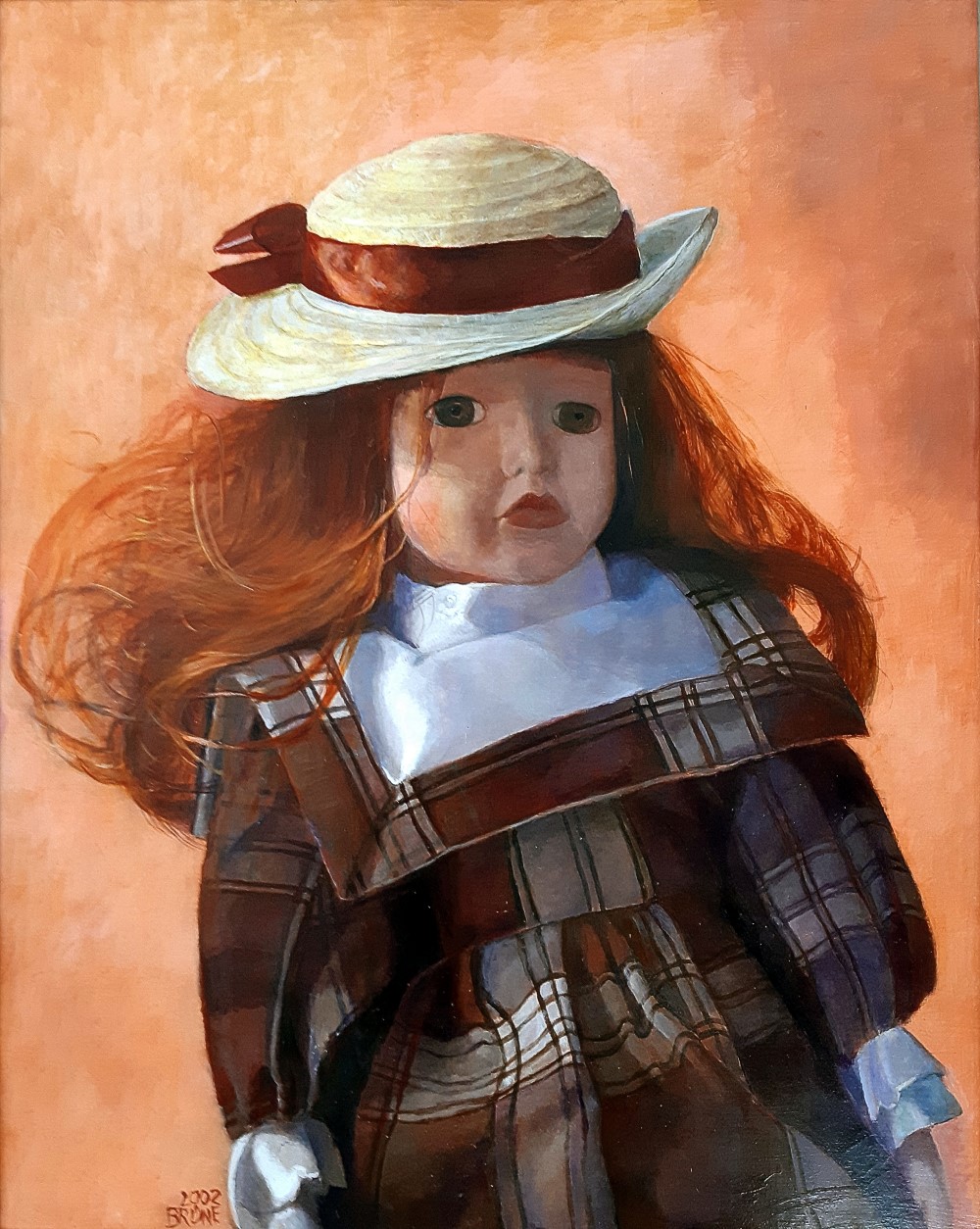 Gudrun Brüne (1941 – 2025) studierte von 1961 bis 1966 an der Hochschule für Grafik und Buchkunst in Leipzig. Von 1979 bis 1999 hatte Gudrun Brüne den Lehrauftrag für Malerei und Grafik an der Kunsthochschule Burg Giebichenstein in Halle/Saale inne. Bereits zu DDR-Zeiten setzte sich diese Malerin mit den Motiven der Puppen und Masken durch. Diese wiedererkennbaren Protagonisten im Malereikosmos Brünes sind oft beschädigt, lädiert, in Gruppen und ineinander verschlungen, ausgeliefert oder aktiv, lieblich und verstörend, entfalten diese ein energisches Eigenleben. Befragt nach dem Motiv der Maske und deren permanenter Neuinszenierung sagte Gudrun Brüne: „Die Maske ist zugleich eine Demaskierung“. Der Mensch hinter der Verhüllung bleibt demnach eben doch sichtbar, wird eventuell noch erkennbarer. „Welche Maske man trägt, verrät viel über den Tragenden.“ ergänzt die Malerin ihre erste Aussage. Die Maske steht für ein Wechselspiel aus Transparenz und Verbergen, eine menschliche Kulturtechnik, die ein gesellschaftliches Miteinander erst möglich macht und uns doch immer wieder vor erhebliche Herausforderungen stellt. Brünes Bilder bestechen durch eine kraftvolle Freiheit, eine geradezu jugendliche Malfreude. Ein Genuß und Vergnügen! Gudrun Brüne war die lebenslange Partnerin von Bernhard Heisig.