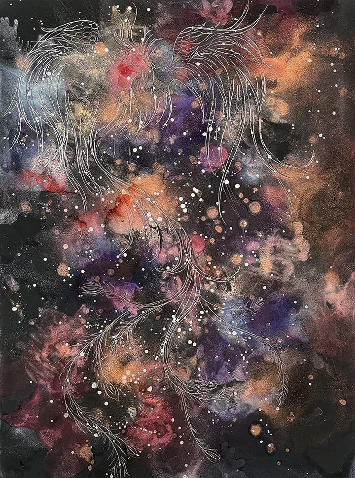 Sonomi Kobayashi ist in Japan geboren und lebt in New York. An der Students Art League in New York studierte sie und arbeitet nun dort als Dozentin. In ihrer Kunst verbindet sie einzigartig japanisches Kulturgut mit amerikanischer abstrakter Malerei. In der „Dragon Series“ erforscht die Künstlerin Sonomi Kobayashi die symbolische und spirituelle Rolle von Drachen als Boten. Drachen dienen in der japanischen Kultur als Vermittler zwischen der Menschheit und dem Göttlichen. Als himmlische Wesen tragen sie menschliche Wünsche zu den Göttern und kehren mit deren Segen zurück. Sie symbolisieren Energie, Transformation und Balance.