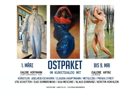 OSTPAKET Adelheid Eichhorn, Claudia Hauptmann, Metulczki, Priska Streit, Uta Schotten, Elke Dombrowski, Kerstin von Klein, Klaus Dobrunz Malerei, Grafik und Objekte 01.03. - 09.05.2015 Galerie Hoffmann Contemporary Art Lange Straße 50 33378 Rheda-Wiedenbrück (Ortsteil Wiedenbrück) Galerie Hoffmann Contemporary Art Eröffnung am Sonntag, 01. März 2015 um 15 Uhr ![]() Ausstellung "Ostpaket" Gastkünstler der Galerie ARTAe aus Leipzig ab dem 1.3.2015 in der Galerie Hoffmann Contemporary Art Rheda-Wiedenbrück Nach der Auflösung der DDR vor 25 Jahren, wird in der Ausstellungskooperation „Ostpaket“ eine Erinnerung wach und kreativ weiterentwickelt. Das bekannte und legendäre Westpaket wird zum Ostpaket. Und da es nun Kaffee und Schokolade wirklich überall zu kaufen gibt, bringt die Gastgalerie ARTAe aus Leipzig feine und herausragende Kunst mit. Die Gäste die wir ab dem 1.3.2015 in der Rheda-Wiedenbrücker „Westgalerie“ Hoffmann Contemporary Art begrüßen werden sind die Künstlerinnen und Künstler: - Adelheid Eichhorn (Werner Tübke-Schülerin, Rudolstadt), - Claudia Hauptmann (Gudrun Brüne-Meisterschülerin, Berlin), - Metulczki (Maler, Leipzig) und - Priska Streit (Bildhauerin,Leipzig). Dem „Ostpaket“ werden als Dialogpartner Arbeiten von Künstlerinnen und Künstlern der Galerie Hoffmann Contemporary Art gegenübergestellt. Zu sehen sind Arbeiten von: - Adelheid Eichhorn, colorierte Radierungen - Claudia Hauptmann, figürliche, realistische Malerei und Portraits - Metulczki, Stilleben im Stile der Niederländischen Malerei - Trinkgedächtnisse - Priska Streit, Plastik und Objekte im Dialog mit: - Uta Schotten, Malerei - Elke Dombrowski, abstrakte Malerei - Kerstin von Klein, Plastik - Ilka Meschke, Körperportraits - Klaus Dobrunz (Gast), Malerei Zu den Künstlerinnen und Künstlern: Claudia Hauptmann ist eine klassische Vertreterin der ostdeutschen Malerei. Technische Versiertheit verbunden mit lesbaren, zeitgenössischen und zugleich zeitlosen Motiven und Themen wie z.B. Glaube, Liebe, Hoffnung die sie in einem christlich-ikonografischen Kontext zeigt, nehmen einen einzigartigen Platz in der aktuellen Kunst ein. Claudia Hauptmann wird von der Leipziger Galerie ARTAe vertreten und erstmals in einer Galerieausstellung im Westen gezeigt. mehr Infos zu Claudia Hauptmann Metulczki ist als Maler den altmeisterlichen Techniken der Lasurmalerei verpflichtet und knüpft damit an der Niederländischen Stillleben-Malerei an. Als Chronist des Alltages sind Genrethemen, wie in der Serie „Trinkgedächtnisse“ festgehalten, sein Thema. Installative Arbeiten und Objekte runden sein Oeuvre ab. Metulczki lebt und arbeitet in Leipzig. mehr Infos zu Metulczki Priska Streit hat sich aus dem Westen gebürtig nach der Wende im Osten niedergelassen. Priska Streit ist eine sensible Beobachterin der Wirklichkeit, schöpft eine überzeugende Motivwelt, die uns in die Welt aus Erinnerung und Phantasie führen. Priska Streit sagt: „Es geht darum, sich genußvoll dem Sein hinzugeben und die Dinge entspannt zu betrachten.“ mehr Infos zu Priska Streit Adelheid Eichhorn studierte u.a. bei Werner Tübke an der Leipziger Kunsthochschule Hochschule für Grafik und Buchkunst). Ihre colorierten Radierungen sind Ergebnis einer Befreiung des figürlichen Darstellens und die Orientierung an Theorien des Bauhauses. Der lebendige und wilde Gestus oftmals angeregt durch Musik und Wassilly Kandinsky verleihen den Arbeiten eine jugendliche Kraft und Dynamik, die auf einem starken Freitheitsgedanken basiert. Man kann Adelheid Eichhorn gut und gerne – wie es die Kunsthistorikerin Dr. Tatjana Mehner 2013 geschrieben hat - als „Meisterin der Abstraktion“ bezeichnen. mehr Infos zu Adelheid Eichhorn Diesen vier Leipziger Gastkünstlern stehen die „Westkünstler“ der Galerie Hoffmann gegen über. Ilka Meschke, ursprünglich aus Dresden stammend hat ihren künstlerischen Weg über Düsseldorf genommen. Als Schülerin von Markus Lüpertz, ist sie mit den malerischen und zeichnerischen Arbeiten mit illustrativer Erzählkunst und Kraft in ihren Bildern dem Wunder des Lebens und den absurden Seiten der gesellschaftlichen Konventionen auf den Fersen. Elke Dombrowski ist als Malerin mit unfigürlicher und abstrakter Malerei mehr dem modern-tiefenwirksamen Farbfeldern und den Farbschichtungen auf der Spur. Themen verwandeln und die überraschende innewohnende Seite zeigen, versteckt mit Farbe und ihrer Wirkung auf die Menschen. Uta Schotten gehört in die niederländische Altmeistertradition und nimmt sich nicht die Hochglanzseite der Kunst vor, sondern die überzeitlichen, ewig gültigen und vertrauten Ikonen der abendländischen Kultur. Kerstin von Klein zeigt einen Werkausschnitt der Arbeit „Bürger von Calais“ die von dem historischen Thema, über Auguste Rodin als die klassische freie Plastik im Raum gelten. Kerstin von Klein arbeitet seit Jahren an den sieben Personifikationen, den menschlichen Gemütszuständen in der absoluten Grenzsituation zwischen Leben und Tod. Vier Teilarbeiten als Gipsplastik werden erstmals öffentlich als Großfigurengruppe zu sehen sein. Als Gast aus dem Westen Klaus Dobrunz, der in seiner Malerei der klassischen Bildikonografie der Malerei und den Geschlechterstereotypen auf den Grund geht. Hier gehen gewohnte Rollenbilder aus dem Klischee in überraschende Bildaussagen über. Die Ausstellung „Ostpaket“ wird am Sonntag, den 1.3.2015 um 15 Uhr in der Galerie Hoffmann Contemporary Art in Anwesenheit der beiden Leipziger Sabine Elsner (Galeristin) und Metulczki (Maler) eröffnet. Laufzeit vom 1.3.2015 bis zum 9.5.2015 Öffnungszeiten Di-Sa 14.30 -18.00 Uhr und nach Vereinbarung Galerie Hoffmann Contemporary Art Lange Straße 50 33378 Rheda-Wiedenbrück (Ortsteil Wiedenbrück) http://www.kunstagentur-hoffmann.de/kontakt/ Wir laden sehr herzlich zur Eröffnung am Sonntag, 01. März 2015 um 15 Uhr in die Galerie Hoffmann Contemporary Art, Lange Straße 50 in Rheda-Wieden