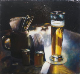 METULCZKI Trinkgedächtnisse 25.10. - 21.12.2013 Galerie ARTAe Leipzig, Gohliser Straße 3, 1. OG Eröffnung: Freitag, 25. Oktober 2013 von 18 bis 22 Uhr Einführung um 19 Uhr: Dr. Johannes Stahl, Kunsthistoriker, Köln Zur Eröffnung am Freitag, den 25. Oktober 2013 von 18 bis 22 Uhr sind Sie und ihre Freunde herzlich eingeladen! Der Künstler ist anwesend. ![]() ![]() Links: Metulczki, Calwerstraße 9, 2013, Acryl und Schellack auf Leinwand, 22 x 22 x 5 cm Rechts: Metulczki, Kühlschrankbild Nr. 20, 2011, Mischtechnik auf Leinwand, 31 x 24 cm Eidetische Biere „Genaugenommen gibt es ‚die Kunst‘ gar nicht. Es gibt nur Künstler“, beginnt Ernst H. Gombrichs Standardwerk Die Geschichte der Kunst, und ein paar Zeilen später weist Gombrich alles Gerede „über das ‚Wesen der Kunst‘“ als schädlich und töricht zurück. Damit hätten wir das. Also reden wir über den Künstler Metulczki. Als ich vor einigen Jahren zum erstenmal einiger Bilder aus seiner Serie „Bierleben“, die nun unter dem Titel „Trinkgedächtnisse“ firmiert, ansichtig wurde, verschlug es mir buchstäblich beinahe den Atem. Die Präzision und die Leuchtkraft der meist kleinformatigen Acryl-Schellack-Lasurgemälde wirkten auf mich – und sie tun es bis heute unvermindert – epiphanisch, salvatorisch und beglückend zugleich. Das profane Wunder, das sich in zwei Biergläsern bezeugt, die, in warmes Licht gehüllt, auf einem Tresen oder einem hölzernen Kneipentisch stehen beziehungsweise ruhen wie Zeugen einer Welt ohne Kapital, Börse, Staat und Bürokratie – ja, tja, es ist eben: ein Wunder der Wirklichkeit selbst, eine Erscheinung dessen, was ist und zugleich sein sollte, ein Mirakel, das sich im Kleinteiligen, Mißachteten zeigt und deshalb schlicht von Wahrheit kündet, vom – mit Aristoteles und keinesfalls Richard D. Precht zu reden – guten Leben; das, Kürnbergers/Adornos Diktum vom Leben, das nicht mehr lebt, zum Trotz, in Trinkwirtschaften alten Stils noch eine Zufluchtsstätte findet; und auf Metulczkis verschwommenen, ins Abstrakte tendierenden „Kühlschrankbildern“, übermalten und mehrfach übergossenen und überklebten Alltagsphotoimpressionen von gesichtslosen Herumstehern und -hängern und -hockern und Säufern und Tippelbrüdern, schmerzlich konterkariert wird. Hie das Lichte, Exakte, Plastische, Gegenständliche, das in seiner „Zuhandenheit“ (Heidegger) schier sprachlos machend Schöne und Besänftigende; da das Amorphe eines intoxikierten Lebens, das Metulczki, ohne uns mit sozialpädagogischen Implikationen zu behelligen, festhält, womöglich auch transzendiert. Das Stilleben war in der durchweg bewunderungswürdigen protestantischholländischen Malerei des 17. Jahrhunderts das am stärksten ausdifferenzierte Genre. Da „konnte der Künstler sich aussuchen“, schreibt Gombrich, „was er gerne malen wollte, und die Gegenstände so auf dem Tisch anordnen, wie es ihm paßte. So wurde die Bildgattung zu einem wunderbaren Experimentierfeld für malerische Probleme.“ Hier war der Maler wohl zum erstenmal frei – befreit von den Diktaten seiner Auftrag- geber, von den Potentaten, die schmeichelhaft-repräsentative Porträts bestellten, von geschichtlichen Großerzählungen und Mythenstoffen. In der Konzentration auf die Dinge vollzog sich die Suspendierung der Herrschaft, und so konnten „ganz uninteressante Gegenstände ein vollendetes Bild ergeben“ (Gombrich). Ich zögere keinen Augenblick, Metulczki an die Seite eines Willem Kalf oder eines Vermeer zu stellen, dem Gombrich attestierte, reine „Wunder“ geschaffen zu haben. Die harmonischen Licht-Schatten-Kontraste, die Reflexe und Brechungen, die wie naturgegeben in sich vollendeten Farb-Form-Kompositionen, die „Körperlichkeit“ der Gläser, Stühle, Tische und angeschnittenen Räume – all das läßt die „Trinkgedächtnisse“ bisweilen photographisch wirken, was, wie man hört, in der vermaledeiten „Kunstszene“ heute kein Malus mehr ist. „Dinge sichtbar zu machen, die schon sichtbar waren, aber nicht gesehen wurden“ (Sandra Markewitz) – diesem Ziel galten Siegfried Kracauers Studien über die „Errettung der äußeren Wirklichkeit“. Metulczki setzt sie fort und ist dabei völlig glaubwürdig. Er hat jedes einzelne der zu sehenden Biere höchstselbst getrunken – und dabei vermutlich als allererster Maler das eidetische Bier entdeckt. „Eidos“ bezeichnet bei Aristoteles, in Abgrenzung zur bloßen Materie („hyle“), die „inseiende Form“, das Allgemeine am je besonderen Stofflichen. Das Wesen des Bieres wird geschaut, an Hand des angeschauten einzelnen Gegenstandes (Bierglases). Metulczkis Bier- Eidetik folgt dergestalt der von Edmund Husserl entwickelten phänomenologischen Methode der eidetischen Reduktion: des Erfassens evidenter Phänomene, die es der Intuition zufolge tatsächlich gibt. Durch reines Schauen, das „intentionale Erlebnis“ unter Ausschluß aller Vorurteile („Epoché“), erschließt sich die Wesenhaftigkeit der Dinge – respektive das Wesen („Eidos“) des Bieres. Bierphänomenologie also ist, mit Husserl zu reden, auch: „Wesensschau des Gegebenen“. Da allerdings schwer zu sagen ist, was das Wesen des Bieres schlechthin ausmacht, ordert Metulczki immer wieder ein Glas Bier, schaut es schweigend an, photographiert es, trinkt es und malt es hinterher, in mehreren Schichten. Und wenn Ernst H. Gombrich angesichts der holländischen Meister erläutert: „Sie waren es, die uns gelehrt haben, das Malerische in der vertrauten Umgebung zu suchen“; sie „konnten ohne dramatische Effekte auskommen; sie malten einfach ein Stück Welt, wie sie es sahen“ – dann sage ich: Metulczki, dieser „Hexenmeister“ (Gombrich über Rembrandt), macht eine Welt, eine Wirklichkeit, eine Wesenhaftigkeit sichtbar, die bislang niemand gesehen hat und doch jeder kennt. Und wie er das macht, das ist ein Wunder, das bewundert werden soll. Nein, muß. Jürgen Roth, freier Aut