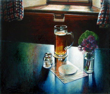 Ausstellung und Frühschoppen-Lesung Vol. 11 in der Galerie Schwalbe 54, Frankfurt (Main) Metulczki - Wir sind Bier Malerei 05. - 08.10.2016 Galerie Schwalbe 54 Schwalbacher Straße 54 60326 Frankfurt / Main (Gallusviertel) Öffnungszeiten: Mittwoch bis Samstag, 14 – 22 Uhr und nach Vereinbarung Kontakt: 0160-9111 8817 oder 0160 – 4048 559 Eröffnung: Mittwoch, 05. Oktober 2016 um 19 Uhr ![]() ![]() links: Metulczki: Trinkgedächtnis, Am Graben I., 2016, Acryl und Schellack auf LW, 17 x 20 cm rechts: Metulczki: Trinkgedächtnis, Ludwigstraße I., 2016, Acryl und Schellack auf LW, 20,5 x 25 cm Metulczkis dritte Einzelausstellung in der Frankfurter Galerie Schwalbe 54 ist mit dem Titel „Wir sind Bier“ überschrieben und wird am Mittwoch, den 05. Oktober 2016 ab 19 Uhr eröffnet. Metulczki ist ein besonderer Künstler: Er katapultiert das Bier an sich in die Hemisphäre der Kunst. Zumeist sind es in realen Kneipen gefundene und inszenierte klassische Stilleben, die immer mindestens ein Bierglas, gefüllt, halbvoll oder leer beinhalten. Die menschenleeren Kompositionen sind farbprächtig und lichtdurchflutet. Es gelingt Metulczki eine magische Ruhe zu schaffen, die einerseits mit Tristesse und Melancholie in Verbindung gebracht werden kann und andererseits eine hohe Ästhetik mit sich bringt. An Eduard Hoppers Bilder erinnernd, hält Metulczki besondere Orte fest, die er mit seiner Spürnase in unterschiedlichen Städten Deutschlands findet. Seine malerische Umsetzung des Lichtes, der Lichtbrechungen im Glas stehen der eines Vermeer sowie holländischen Stilleben in Nichts nach. Die Besonderheit liegt neben der technischen Versiertheit in der Erhöhung des Banalen, dem Erkennen des Unscheinbaren und dem Festhalten von Alltäglichem. In dem Künstlerbuch „Wir sind Bier“ begegnen sich 46 Abbildungen von Metulczkis Werken und witzige sowie tiefsinnige Biertypologien von Jürgen Roth. Beide verbindet nicht nur die Leidenschaft zum Gerstengetränk, sondern auch die künstlerische Arbeit damit. Zur Eröffnung am Mittwoch, 05. Oktober 2016 um 19 Uhr laden wir sehr herzlich in die Frankfurter Galerie Schwalbe 54 ins Gallusviertel ein. Der Leipziger Metulczki wird persönlich vor Ort sein. Mehr zu Metulczki Frühschoppen-Lesung Vol. 11: Jürgen Roth und Mathias Tretter Samstag, 08. Oktober 2016 von 11 bis 13 Uhr Jürgen Roth liest Durcheinandertexte, die sich u. a. um Biere und Tiere drehen und aus seinen neuen Büchern "Wir sind Bier" (zusammen mit Metulczki) und "Kritik der Vögel" stammen. Zudem hat er vor, sich mit seinem in der "taz" erschienenen Text "Frankfurt fuckt ab" unbeliebt zu machen, die Lesung zu sprengen und Herrn Tretter das Feld zu überlassen, jenem Komiker, der einst freiwillig nach Dunkeldeutschland zog und seitdem lustige Westalgie zum Vortrage bringt. Vielleicht wählt er, Roth jetzt wieder, aber auch die Variante der Einschmeichelung und lobt das Gallus und die Frauen. Mehr zur Lesung Gemeinschaftsprojekt der Galerien: ![]() ![]() Mit freundlicher Unterstützung von: ![]() Galerie ARTAe Gohliser Straße 3 / 1. OG 04105 Leipzig Öffnungszeiten: Mittwoch - Samstag, 15 - 19 Uhr und nach Vereinbarung Haltestelle "Nordplatz / Michaeliskirche" Linie 12 Haltestelle "Chausseehaus" Linie 16 und 11 Showroom Galerie ARTAe Menckestraße 3 04155 Leipzig Öffnungszeiten: Freitag 20 - 22 Uhr, Samstag, 10 - 12 Uhr und nach Vereinbarung |