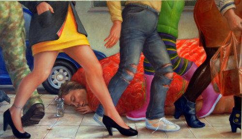C.A.R. - contemporary art ruhr Webseite der Kunstmesse C.A.R. 30.10. - 01.11.2015, Welterbe Zeche Zollverein, Gelsenkirchener Strasse 181, 45309 Essen Wir sind in Halle 5!! und zeigen Werke von: Arno Bojak, Claudia Hauptmann, Metulczki und Priska Streit ARNO BOJAK ![]() ![]() ![]() Arno Bojak, zwei Zeichnungen aus der Serie "RAW DRAW UP", 2015. Je 29,5 x 21 cm Arno Bojak: Brandenburg, deine Naturwunder: Das holländische Stilleben, 2014, Acryl auf Nessel, 90 x 90 cm Der Künstler Arno Bojak ist einer der letzten Meisterschüler von Professor Dieter Krieg. Auf der C.A.R. 2015 präsentieren wir seine Zeichnungen aus der Serie „Raw Draw UP“. Außerdem eine kleine Auswahl seiner kleinformatigen Bilder der Serie „Brandenburg, deine Naturwunder“. Mehr zu Arno Bojak Arno Bojak hat in seiner künstlerischen Wut innerhalb von nur wenigen Monaten hunderte von Zeichnungen geschaffen. Dies ähnelt einem Vulkanausbruch von Ideen, Geschichten, Schnipsel, die sich zwischen Existentialismus und Lebenslust bewegen. Kulturpessimismus und Humor kommen hier auf eine unfassbar direkte Art zusammen. Die Vielfalt an Spielarten ist immens. Leicht und feingezeichnete Blätter behaupten sich gegenüber den sehr dichten, verschachtelten und mehrfach über- und hinterzeichneten Papieren. Mehr noch, es beginnt ein Dialog zwischen den Zeichnungen, der gewollt und konzipiert ist. Die ersten Arbeiten entstanden als 16er Blöcke und wurden als Block A, B, C usw. zusammengestellt und bis zum Block Z vervollständigt. So beinhaltet die Serie "Raw Draw UP" insgesamt 416 Zeichnungen. CLAUDIA HAUPTMANN ![]() ![]() ![]() Claudia Hauptmann: Ein Narr, der die Daumen nicht rührt, 2015, Öl auf Hartfaser, 65 x 55 cm Claudia Hauptmann, Die Störung, 2015, Öl auf Leinwand, 100 x 70 cm Claudia Hauptmann, Telefonmadonna, 2015, Öl auf Hartfaser, 41,5 x 28,5 cm ![]() Claudia Hauptmann, Straßenszene, 2015, Öl auf Leinwand, 80 x 140 cm Die Malerin Claudia Hauptmann steht in der Tradition der ostdeutschen Malerei. Ausgebildet an der Abendakademie der Leipziger Hochschule für Grafik und Buchkunst und an der Kunsthochschule Burg Giebichenstein, Halle (Saale) ist sie eine der raren Meisterschüler von Gudrun Brüne. Die Verbindung von aktuellen und gesellschaftlichen Themen mit altmeisterlicher und handwerklich perfekter Malerei begeistert und ist einzigartig. Claudia Hauptmann seziert und reflektiert in ihren Bildern unseren Zeitgeist. Sie transformiert vielschichtig, intelligent und humorvoll und regt den Betrachter zur Außeinandersetzung an, ohne belehrend zu sein. Mehr zu Claudia Hauptmann METULCZKI ![]() ![]() Metulczki, Gohliser Straße 1, 2015, Acryl und Schellack auf LW, 20 x 18 cm Metulczki, Nürnberger Straße 1, 2014, Acryl und Schellack auf LW, 17,5 x 20 cm Metulczki, dieser „Hexenmeister“ (Gombrich über Rembrandt), macht eine Welt, eine Wirklichkeit, eine Wesenhaftigkeit sichtbar, die bislang niemand gesehen hat und doch jeder kennt. Und wie er das macht, das ist ein Wunder, das bewundert werden soll. Nein, muß. Jürgen Roth, freier Autor, lebt und arbeitet in Frankfurt am Main Metulczki ist ein stiller Beobachter und keinesfalls ein Moralprediger, doch seine Kunst berührt und stellt ungemütliche Fragen. Dabei geht es ihm auch um eine bestimmte Stimmung, die er einfangen möchte, die einem surreal und fast übersinnlich erscheint. In den Bierstillleben aus der Serie „Trinkgedächtnisse“, die alle in realen Bars und Kneipen entstanden sind, werden Biergläser und -Krüge auf Holztischen und Tresen von altmeisterlichen Hell-Dunkel-Lichteffekte umhüllt. In dieser Serie packt Metulczki, der Autodidakt, all sein Talent und sein virtuoses Können aus, um die Lichtdispersionen durch halbleere Gläser tanzen zu lassen, oder den Bierschaum langsam, leicht und luftig an der Glaswand abrutschend einzufangen. Wie aus einer anderen Welt scheinen diese Gegenstände miteinander zu kommunizieren – eine regelrechte Mystik, die sich dahinter verbirgt. Petronela Soltez, 2014, Kunstmuseum Stuttgart zur Ausstellung „Profane Wunder“ mit Reiner Schlecker im Künstlerhaus Ulm Mehr zu Metulczki PRISKA STREIT ![]() ![]() Priska Streit: Hobby-Ornithologe, 2014, Acrylharz, Holz, Farbe, 25 x 19 x 16 cm, Auflage: 7 Exemplare. Foto: Louis Volkmann Priska Streit: Hubschrauber-Sufi, 2014, Acrylharz, Stoff, Edelstahl, Farbe, 32 x 16 x 16 cm, Auflage: 7 Exemplare. Foto: Louis Volkmann Wenn sich unsere innersten Gedanken, Empfindungen, Hoffnungen und Sehnsüchte tatsächlich archetypisch durch die Vergangenheit, Gegenwart und Zufkunft von Milliarden von Menschen ziehen, dann könnte man unser Streben nach Individualität als eine Art Flucht vor der Bedeutungslosigkeit angesichts Milliarden von Ebenbildern lesen. Priska Streit interessiert sich für diese Augenblicke, in denen sich das Menschsein in seinen unterschiedlichen Formen und Lebensentwürfen offenbart. Da ist z.B. der Hobby-Ornithologe, der sich dem Alltag durch die Beobachtung von Vögeln entzieht. Mehr zu Priska Streit Öffnungszeiten: Offizielle Eröffnung: Freitag, 30.10., 20:00 Uhr; (Karten zur Eröffnung an den Kassen erhältlich) V.I.P.-Preview: Freitag, 30.10., 18:00 Uhr Messetage: Samstag: 31.10.2015, 12:00 Uhr bis 20:00 Uhr Sonntag: 01.11.2015, 11:00 Uhr bis 19:00 Uhr Eröffnung: Freitag, 30. Oktober 2015 ab 20 Uhr Gästekarten der Galerie sind noch vorhanden. Bitte einfach melden. Wir präsentieren dort: Arno Bojak - Berlin - Zeichnung und Malerei Claudia Hauptmann - Berlin - Malerei Metulczki - Leipzig - Malerei Priska Streit - Leipzig - Objekte Galerie ARTAe Gohliser Straße 3 / 1. OG 04105 Leipzig Öffnungszeiten: Mittwoch - Samstag, 15 - 19 Uhr und nach Vereinbarung Haltestelle "Nordplatz / Michaeliskirche" Linie 12 Haltestelle "Chausseehaus" Linie 16 und 11 Showroom Galerie ARTAe Menckestraße 3 04155 Leipzig Öffnungszeiten: Freitag 20 - 22 Uhr, Samstag, 10 - 12 Uhr und nach Vereinbarung |