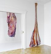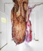 Das sublimierte Fleisch Nichts Ursprünglicheres ist in der Kunst zu denken, als der Körper, der Leib, der Leibes-Körper. Mit seinen Fasern und Fetzchen, gestreuten Wunden, dem Knittrigen, Gedunsenen, dem Weichen und Harten: den Malen des Fleisches. Auch ist kein sinnlicheres Sujet denkbar, als die vulgäre oder ästhetische Ausformung des Innen - Menschen. Um so schwerer sich nicht auf die Wiederholung, das Wiedergekäute, Wiedergemalte zu stützen, sondern noch einmal und erneut zu erfinden, was immer nur meinen kann, eine Unbekannte hinzuzufügen, ins Spiel zu bringen, das Ungedachte, nennen wir es ruhig das Geheimnis (Baudrillard), wenn nicht einsehbar und transparent zu machen, so doch eine Ahnung dessen zu vermitteln. Um nichts weniger geht es dem Künstler Enrico Niemann. Viel lieber diaphan als transparent, nenne ich die Kunst des Enrico Niemann, diaphan, weil es um ein poetisches, wenn auch aufgeklärtes Scheinen und Durchleuchten geht. Bei ihm ist der Körper (Leib), vom Trug gelöst, kein unversehrtes ganzes mehr, sondern brüchiges Fragement: Fremdkörper und zuweilen hässlich und fehlerhaft. Das Ideal tritt bei Niemann einzig als flüchtiges Oszillieren von Farbe und Licht auf, das auch den plumpesten Körpern eine ganz anmutige Leichtigkeit/ Leiblichkeit verschafft. Auf Folien ist der Innen-Mensch aufgezogen, aufgetragen, entkörpert und wird zum konvulsiven und ästhetisches Spiel zwischen den fleischlichen Tönen, auch entortet ist er, denn was Innen war, ist nun, fast gewaltsam nach Außen gestülpt, verzehrt und verzogen und hängt gelegentlich in Schlächtermanier von der Decke. Bewegt man sich zwischen den Leibern, den Werken des Enrico Niemann, stößt man unweigerlich auf neuralgische Punkte, man bewegt sich auf die Schindung des Marsyas zu und weiter noch zum gläsernen Menschen, auch zur Frage nach dem schönen Menschen, dem Leib gewordenen Ideal, rein und so sauber, so unecht wie die Folien die Niemann verwendet. Letztendlich gründet sich das Erstaunen über die Arbeiten Niemanns nicht einzig in der ästhetischen Wirkung (die wohl gemerkt kein einfaches wohlgefälliges Scheinen ist, sondern aus dem klassischen Paradox zwischen Erhabenheit und dessen Gegenteil, ihre Kraft bezieht), sondern vielmehr in der Leichtigkeit, mit den grundsätzlichen Fragen der Lebensbegabung zu handeln, ohne diese den Werken durch ein monströses Konzept künstlich einzuverleiben. Vieles ist eingedacht und bringt sich poetisch-enigmatisch zur Sprache, wird Fleisch. Nancy Hünger, Autorin, Erfurt Fenster schließen |
